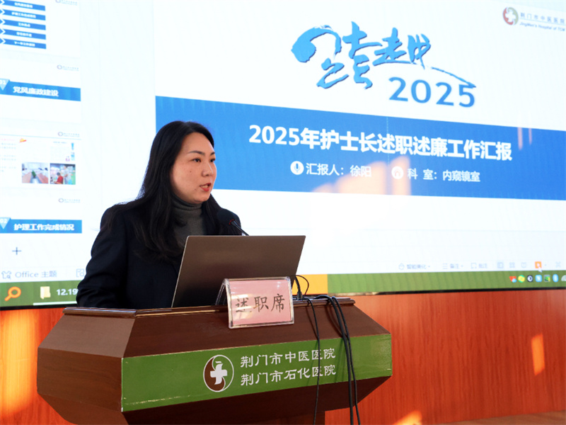 为全面总结2025年度医院护理管理工作成效,进一步强化护士长队伍建设,提升护理管理水平和服务质量,荆门市中医医院于12月18日、19日分两场召开2025年度护士长述职述廉现场评议会。医院全体领导班子成员、各职能科室负责人、各临床医技科室负责人、护士长及护士代表共计100余人参会。会议由护理部主任马蔚蔚主持。