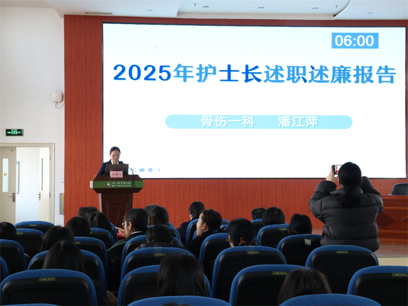 此次述职述廉,来自全院所有护理单元的38名护士长逐一登台,主要从2025年度党风廉政建设、护理工作完成情况(包括护理目标任务完成情况、质量指标监测情况、质量改善项目、中医适宜技术开展情况、科研教学)、工作亮点、存在的不足等方面进行护士长年度述职述廉汇报,全面总结护士长年度工作成效与不足,谋划2026年度工作目标任务。