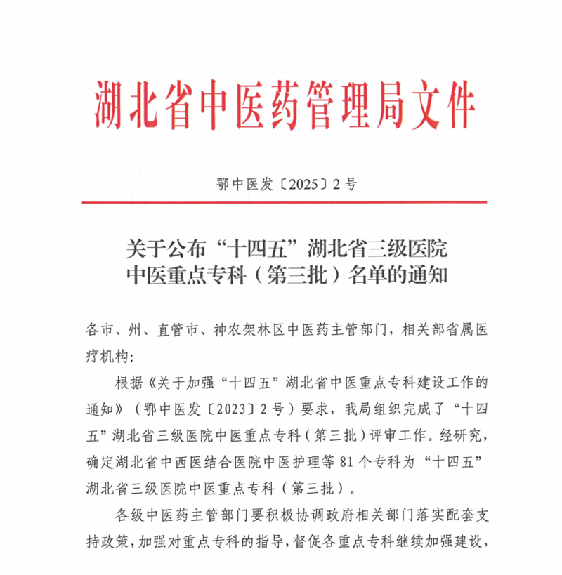 喜讯!荆门市中医医院再添5个省级中医重点专科