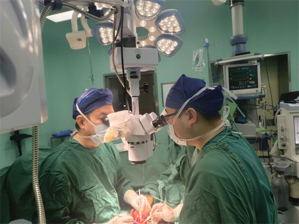 李世君(左)主任与范庆斌医生在动手术