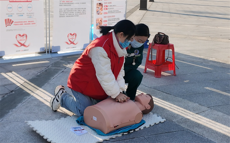急诊科医护人员还借助模拟人进行了心肺复苏实操教学,从按压部位、力度到频率,细致拆解每一个步骤,帮助市民掌握应急救护技能。